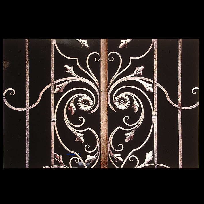 L'ornato interpreta il motivo decorativo in ferro battuto della cancellata di una villa. The ornate plays the decorative motif wrought iron gate of a villa.