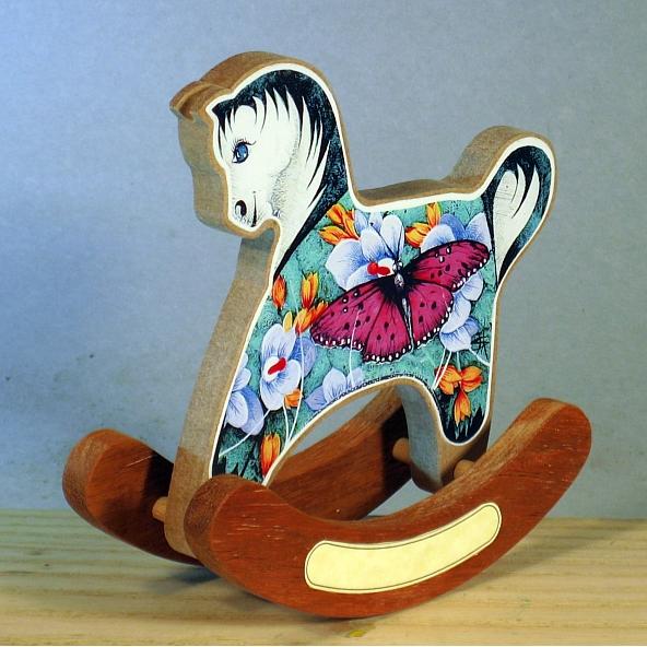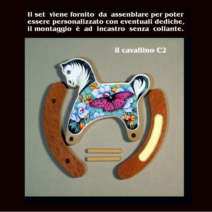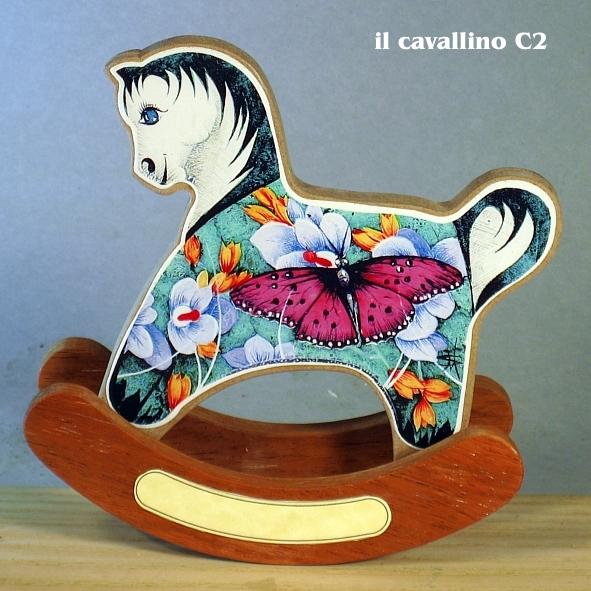Little Art "il cavallino - linea C" , sono piccoli cavallini aventi lo stesso profilo esterno realizzati in legno con lavorazione manuale, sulle bascule 2 etichette, una per lato, da personalizzare con nome o dedica.