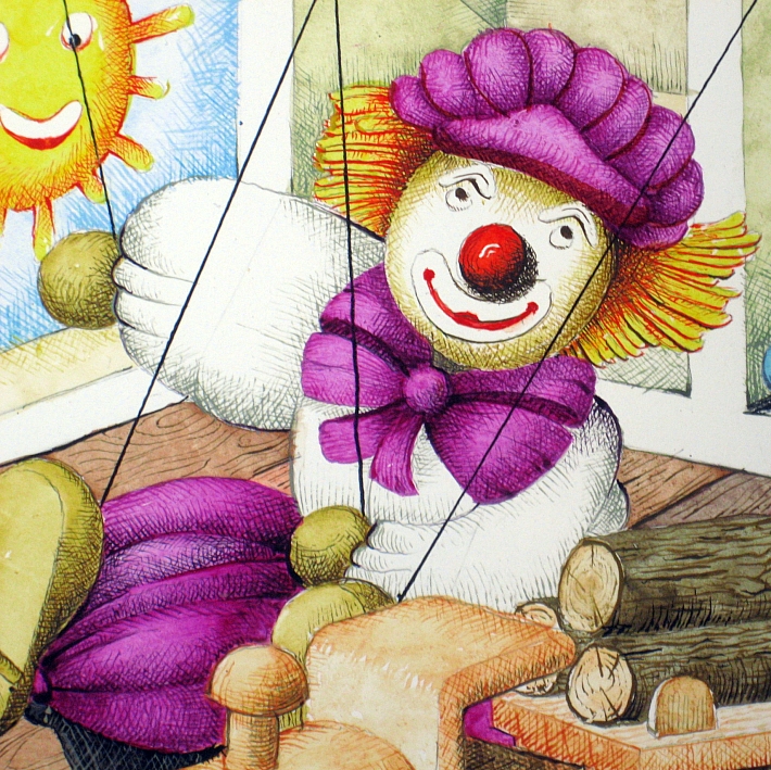 Giocattoli d'arte da collezione, realizzati con legni pregiati, dipinti ad acquerello variamente diluito e tampone con finiture in foglia d'oro 22Kt. Sono tutti pezzi unici, numerati e catalogati, forniti di certificato di produzione firmato dall'artista e sigillati con logo in cera lacca. Ideali per il collezionista, per un regalo di prestigio, per l'arredamento, opere rivolte a bambini e ragazzi come forma educativa per avvicinarli all'arte. Collectible art toys made of precious wood, painted with watercolor and swab with 22Kt gold leaf finishes. They are all unique pieces, numbered and cataloged, provided with a production certificate signed by the artist and sealed with lacquer wax logo. Ideal for the collector, for a prestigious gift, for furnishings, works directed at children and teens as an educational form to bring them closer to art.
