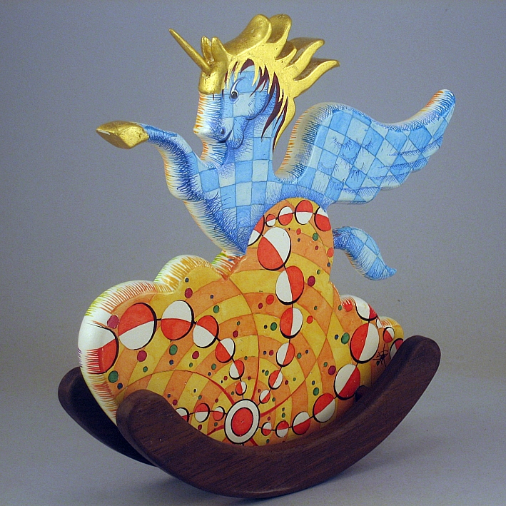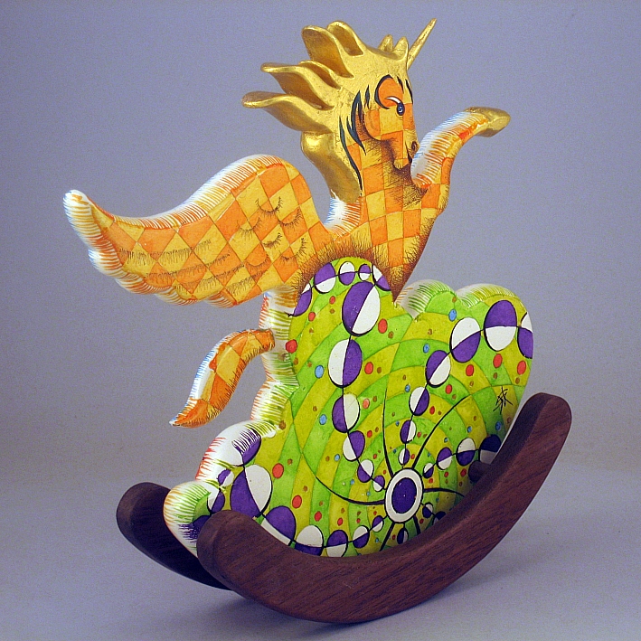 Giocattoli d'arte da collezione, realizzati con legni pregiati, dipinti ad acquerello variamente diluito e tampone con finiture in foglia d'oro 22Kt. Sono tutti pezzi unici, numerati e catalogati, forniti di certificato di produzione firmato dall'artista e sigillati con logo in cera lacca. Ideali per il collezionista, per un regalo di prestigio, per l'arredamento, opere rivolte a bambini e ragazzi come forma educativa per avvicinarli all'arte. Collectible art toys made of precious wood, painted with watercolor and swab with 22Kt gold leaf finishes. They are all unique pieces, numbered and cataloged, provided with a production certificate signed by the artist and sealed with lacquer wax logo. Ideal for the collector, for a prestigious gift, for furnishings, works directed at children and teens as an educational form to bring them closer to art.