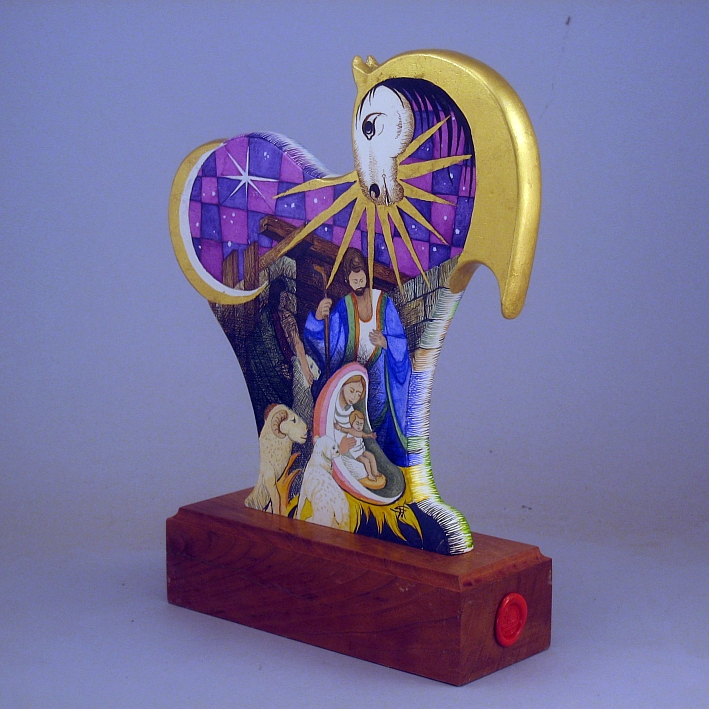 Giocattoli d'arte da collezione, realizzati con legni pregiati, dipinti ad acquerello variamente diluito e tampone con finiture in foglia d'oro 22Kt. Sono tutti pezzi unici, numerati e catalogati, forniti di certificato di produzione firmato dall'artista e sigillati con logo in cera lacca. Ideali per il collezionista, per un regalo di prestigio, per l'arredamento, opere rivolte a bambini e ragazzi come forma educativa per avvicinarli all'arte. Collectible art toys made of precious wood, painted with watercolor and swab with 22Kt gold leaf finishes. They are all unique pieces, numbered and cataloged, provided with a production certificate signed by the artist and sealed with lacquer wax logo. Ideal for the collector, for a prestigious gift, for furnishings, works directed at children and teens as an educational form to bring them closer to art.