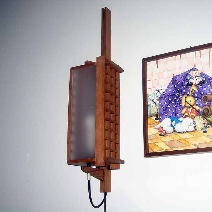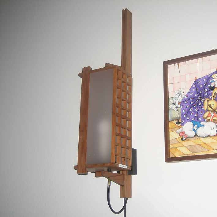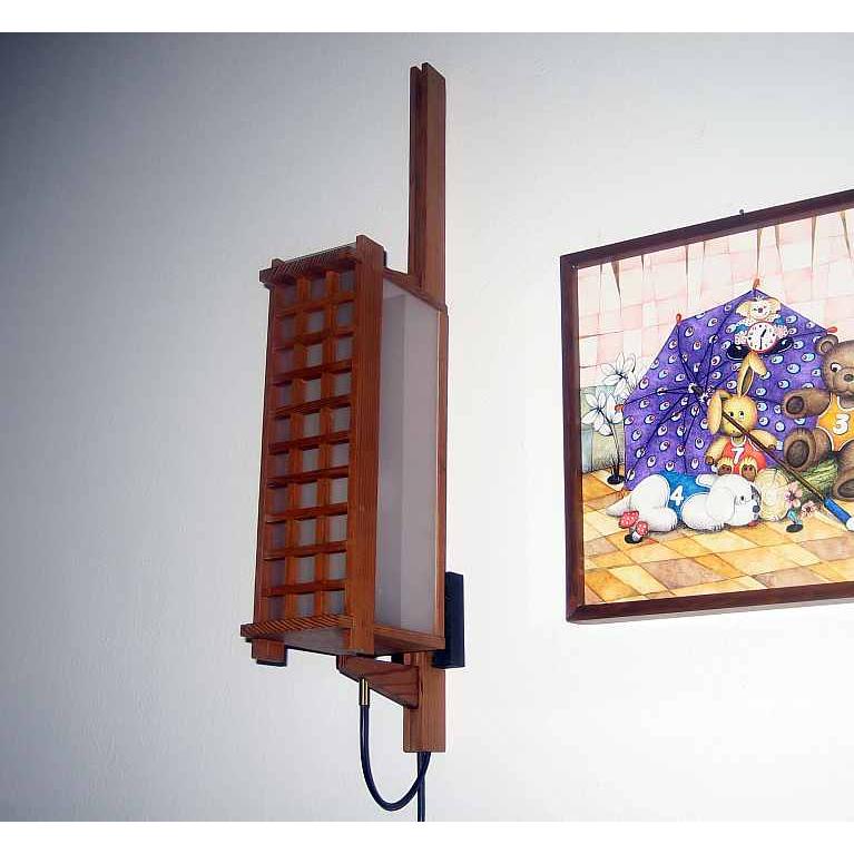 Collezione "whim" - linea "Turning"Linea di lampade da parete girevoli costruite con legni pregiati e vetri acrilici, hanno tutte lo stesso design strutturale, cambia però l'elemento decorativo del vetro anteriore , sempre diverso per renderle tutte opere uniche e creare così un prodotto artistico, la presente lampada è realizzata con listelli di larice antico.L'opera é autenticata con sigillo in cera lacca e accompagnata da un certificato di produzione.