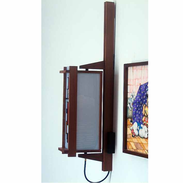 Collezione "whim" - linea "Turning"Linea di lampade da parete girevoli costruite con legni pregiati e vetri acrilici, hanno tutte lo stesso design strutturale, cambia però l'elemento decorativo del vetro anteriore , sempre diverso per renderle tutte opere uniche e creare così un prodotto artistico, la composizione decorativa è realizzata con smalti per vetro.Ogni opera é autenticata con sigillo in cera lacca e accompagnata da un certificato di produzione.