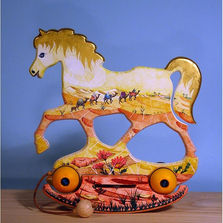 Giocattoli d'arte da collezione, realizzati con legni pregiati, dipinti ad acquerello variamente diluito e tampone con finiture in foglia d'oro 22Kt. Sono tutti pezzi unici, numerati e catalogati, forniti di certificato di produzione firmato dall'artista e sigillati con logo in cera lacca. Ideali per il collezionista, per un regalo di prestigio, per l'arredamento, opere rivolte a bambini e ragazzi come forma educativa per avvicinarli all'arte. Collectible art toys made of precious wood, painted with watercolor and swab with 22Kt gold leaf finishes. They are all unique pieces, numbered and cataloged, provided with a production certificate signed by the artist and sealed with lacquer wax logo. Ideal for the collector, for a prestigious gift, for furnishings, works directed at children and teens as an educational form to bring them closer to art.
