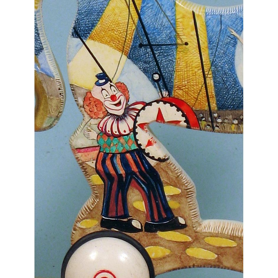 Giocattoli d'arte da collezione, realizzati con legni pregiati, dipinti ad acquerello variamente diluito e tampone con finiture in foglia d'oro 22Kt. Sono tutti pezzi unici, numerati e catalogati, forniti di certificato di produzione firmato dall'artista e sigillati con logo in cera lacca. Ideali per il collezionista, per un regalo di prestigio, per l'arredamento, opere rivolte a bambini e ragazzi come forma educativa per avvicinarli all'arte. Collectible art toys made of precious wood, painted with watercolor and swab with 22Kt gold leaf finishes. They are all unique pieces, numbered and cataloged, provided with a production certificate signed by the artist and sealed with lacquer wax logo. Ideal for the collector, for a prestigious gift, for furnishings, works directed at children and teens as an educational form to bring them closer to art.