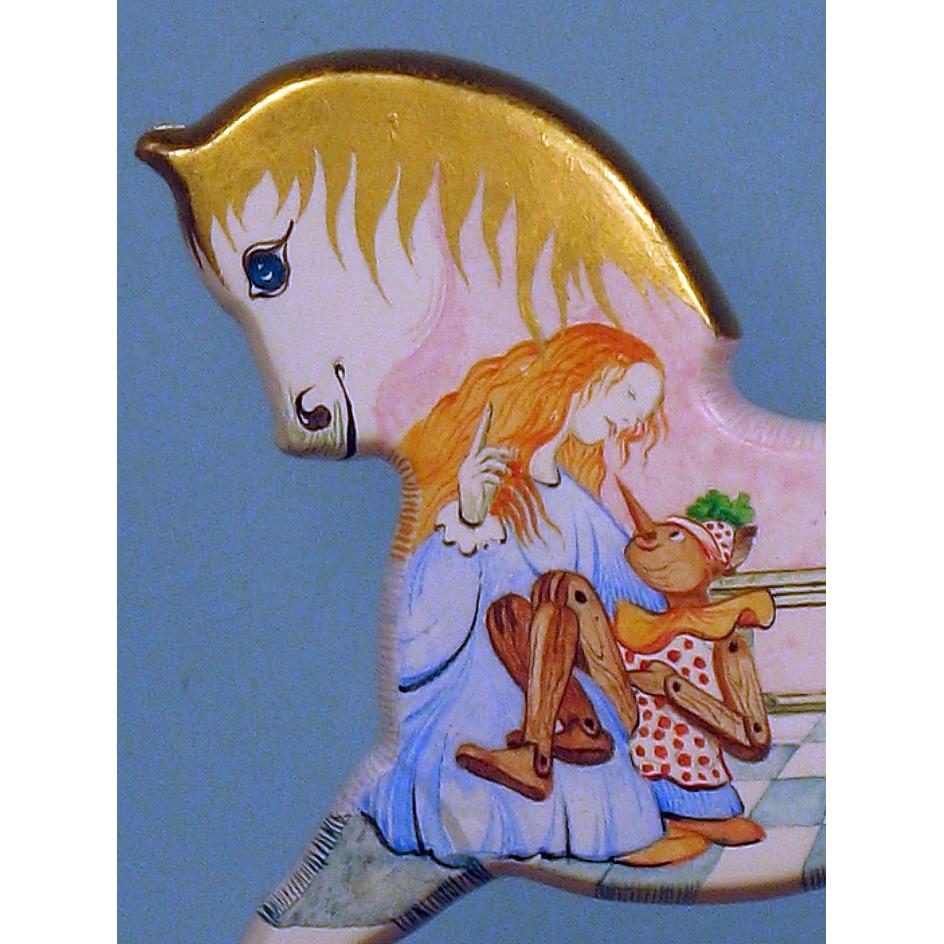 Giocattoli d'arte da collezione, realizzati con legni pregiati, dipinti ad acquerello variamente diluito e tampone con finiture in foglia d'oro 22Kt. Sono tutti pezzi unici, numerati e catalogati, forniti di certificato di produzione firmato dall'artista e sigillati con logo in cera lacca. Ideali per il collezionista, per un regalo di prestigio, per l'arredamento, opere rivolte a bambini e ragazzi come forma educativa per avvicinarli all'arte. Collectible art toys made of precious wood, painted with watercolor and swab with 22Kt gold leaf finishes. They are all unique pieces, numbered and cataloged, provided with a production certificate signed by the artist and sealed with lacquer wax logo. Ideal for the collector, for a prestigious gift, for furnishings, works directed at children and teens as an educational form to bring them closer to art.