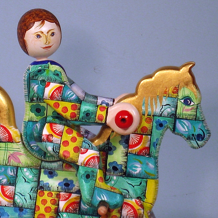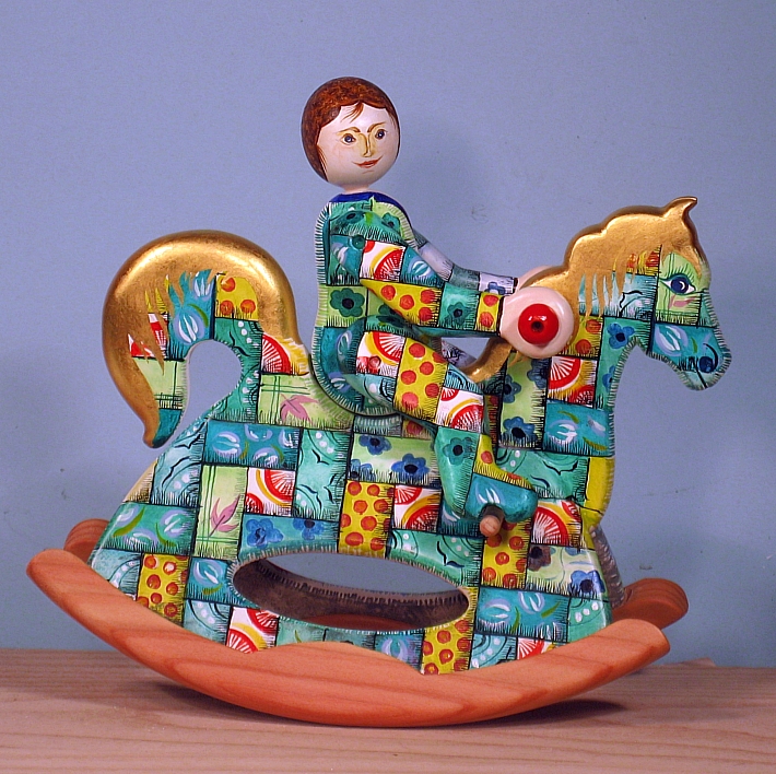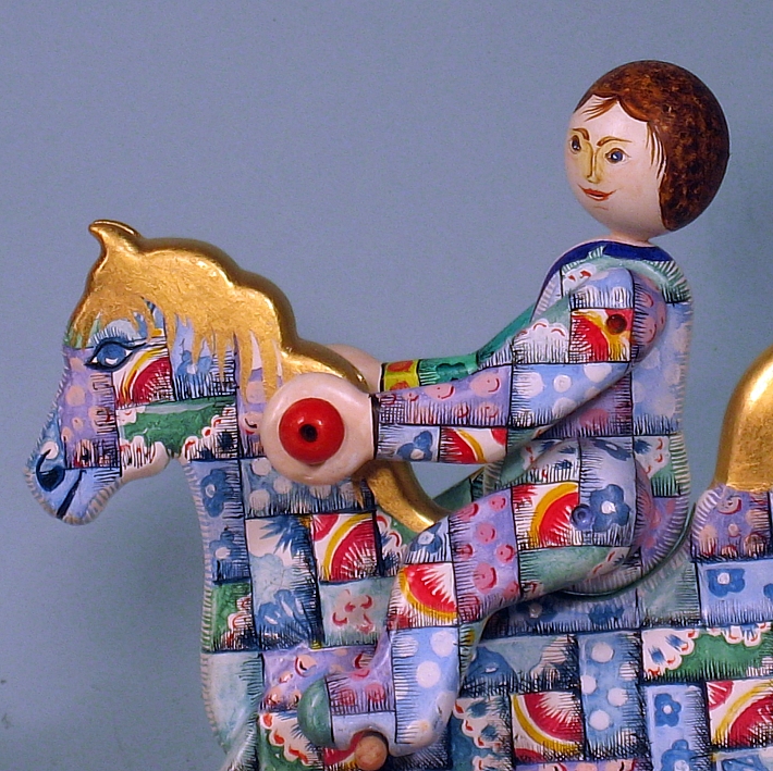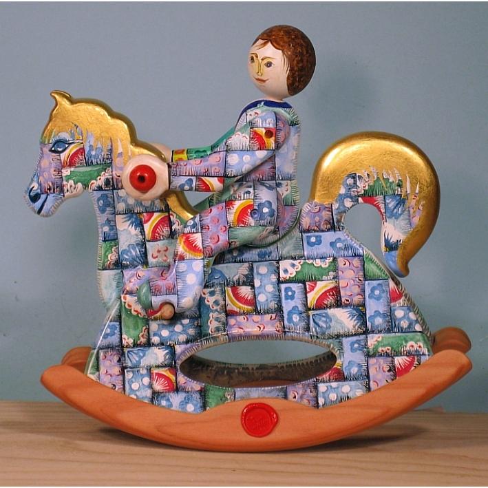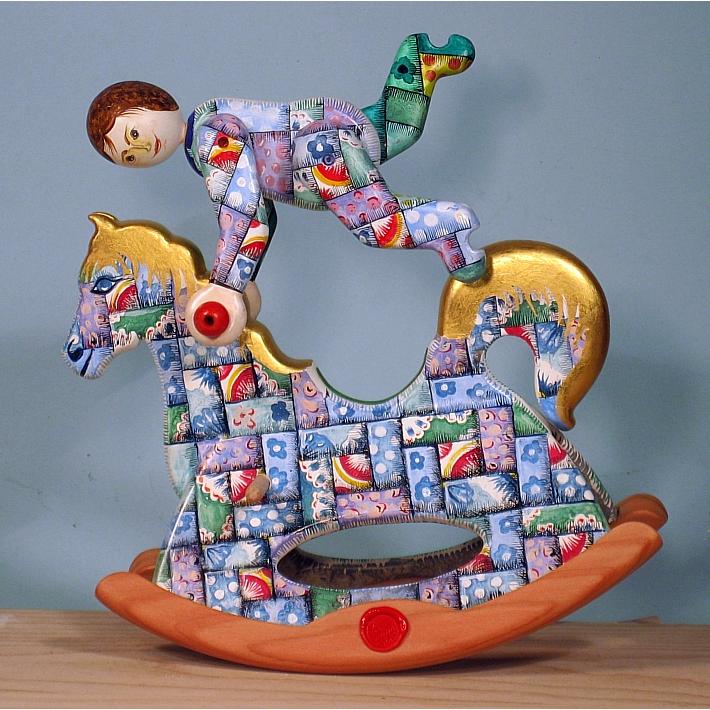 Giocattoli d'arte da collezione, realizzati con legni pregiati, dipinti ad acquerello variamente diluito e tampone con finiture in foglia d'oro 22Kt. Sono tutti pezzi unici, numerati e catalogati, forniti di certificato di produzione firmato dall'artista e sigillati con logo in cera lacca. Ideali per il collezionista, per un regalo di prestigio, per l'arredamento, opere rivolte a bambini e ragazzi come forma educativa per avvicinarli all'arte. Collectible art toys made of precious wood, painted with watercolor and swab with 22Kt gold leaf finishes. They are all unique pieces, numbered and cataloged, provided with a production certificate signed by the artist and sealed with lacquer wax logo. Ideal for the collector, for a prestigious gift, for furnishings, works directed at children and teens as an educational form to bring them closer to art.